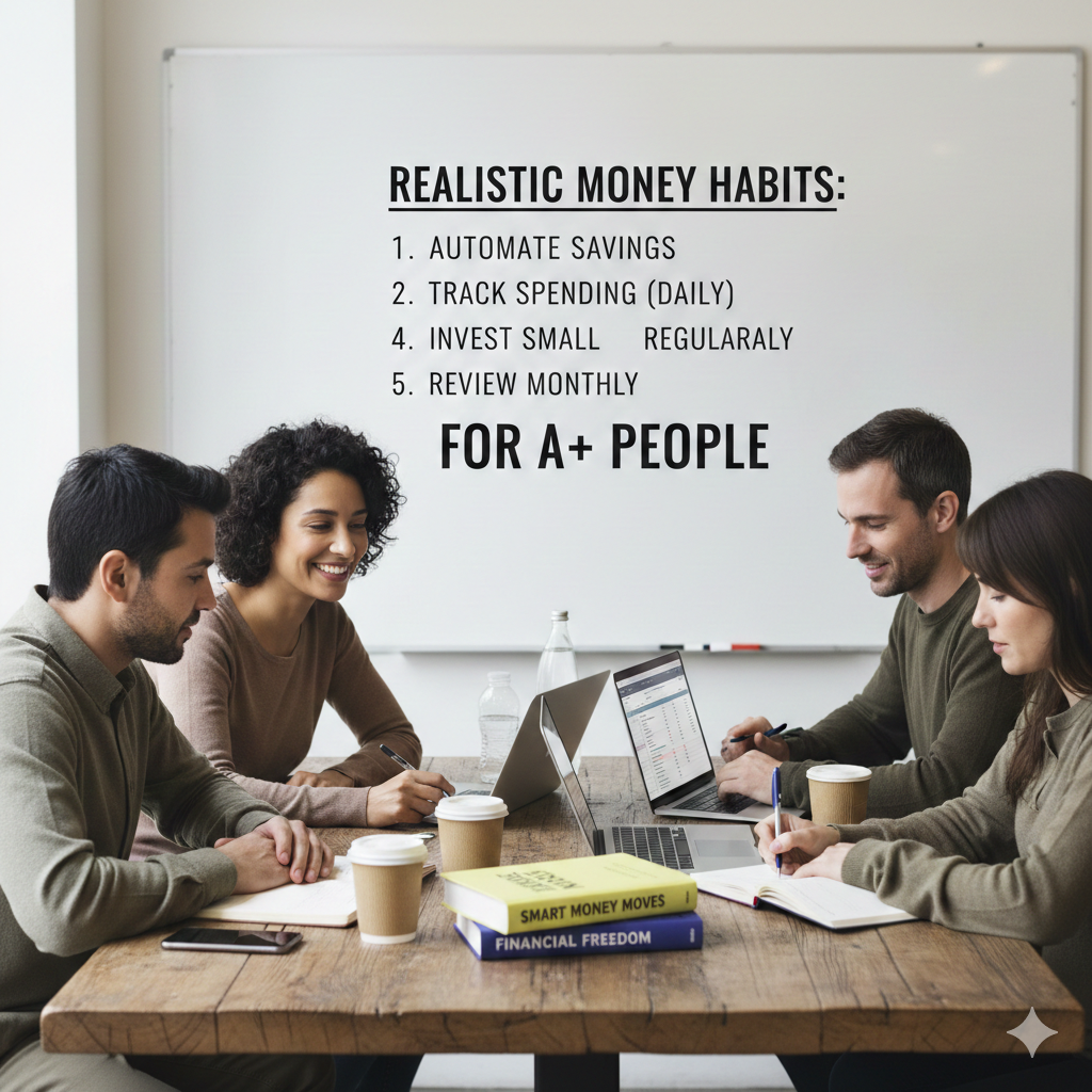 Realistic money habits include saving small amounts regularly, spending intentionally, and avoiding unnecessary debt. These habits are sustainable and adaptable.